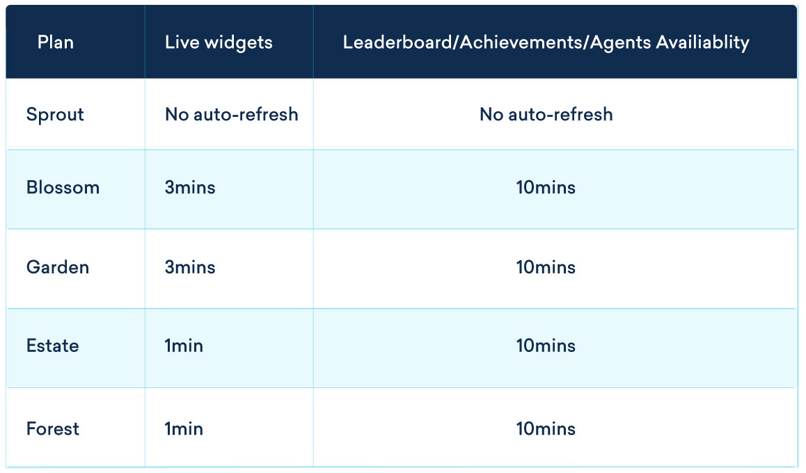 • At a time only 3 Agent availability widgets, 1 Leaderboard widget and 1 Achievements widget will be displayed in the dashboard.